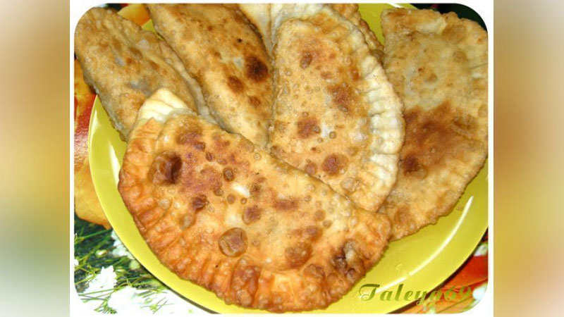 Раскатываем лепешки диаметром 12-15 см, на одну половинку кладем фарш, второй половинкой его закроем и хорошо защипнем.