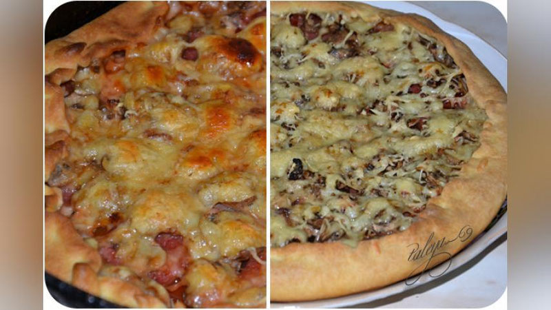 «Нет-нет, мам, только не с грибами! Мы любим с колбасой!» - так протестовали мои дети против попыток испечь именно грибную пиццу. "Хорошо, - подумала я, - значит, для меня будет грибная, а для вас - колбасно-грибная". В итоге получилось два вида пиццы.