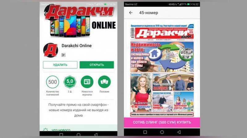 Онлайн вы можете купить газеты «Даракчи» (на узб.языке), «Даракчи плюс» (на рус.языке) и «Согдиана» (на узб.языке).