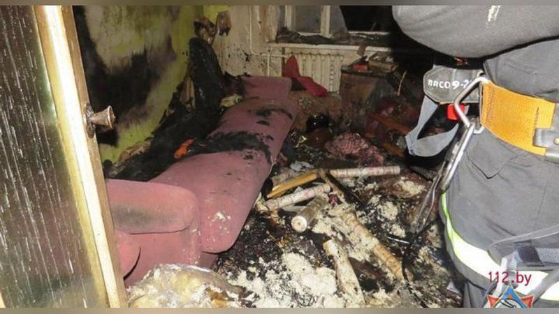 В результате пожара горел диван и домашнее имущество в квартире на площади 3 кв.м.