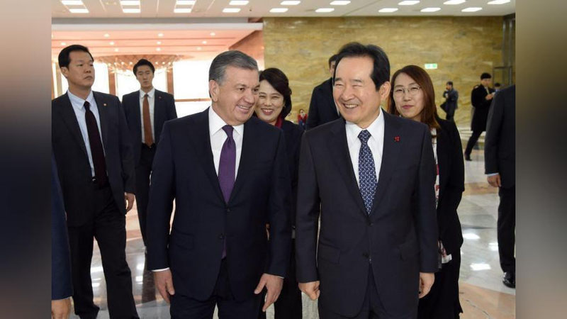 В рамках государственного визита Президента Узбекистана в Республику Корея, глава нашего государства Шавкат Мирзиёев посетил Национальную Ассамблею (парламент) Республики Корея, где встретился со Спикером Национальной Ассамблеи Чон Сэ Гюном.
