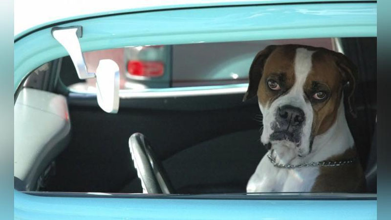 Продолжительное гудение автомобиля привлекло внимание мужчины, который признал пса за обычного человека, давящего на руль. Однако, подойдя поближе, он понял, что в машине сидит только собака.