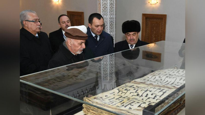 Глава Афганистана с большим интересом ознакомился с Кораном Османа, а также с другими историко-духовными памятниками.