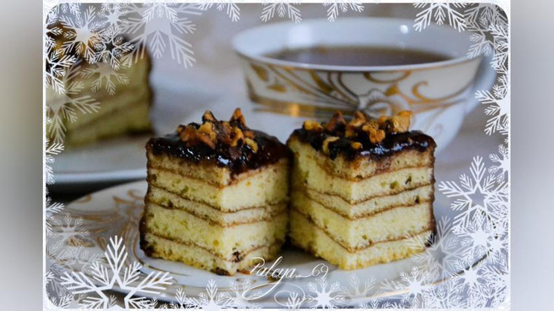 Выложить поверх зарумяненного коржа следующую ложку теста, разровнять и снова запечь. Выкладываем и выпекаем слои, пока не закончится тесто.