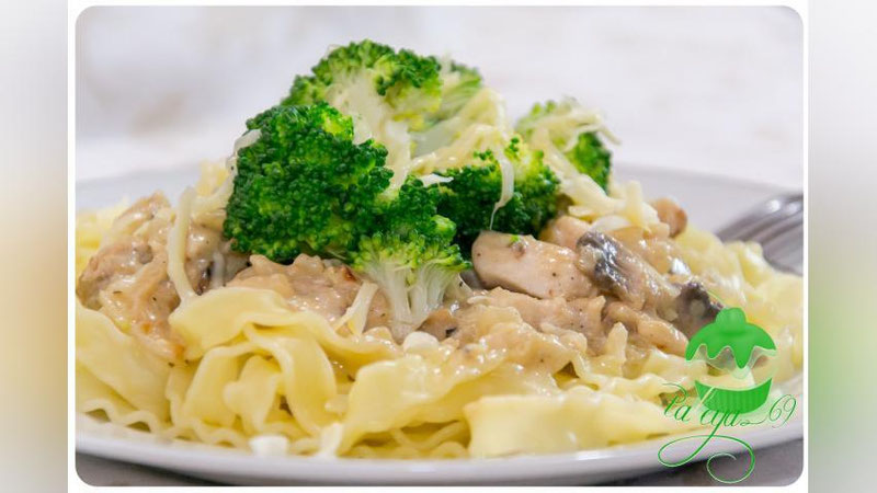 Феттуччине (итал.,от fettuccia - ленточка) - один из популярных в Италии видов пасты.Это тонкие плоские полоски теста шириной около 7 мм, которые подаются с различными соусами.По рецепту должна быть брокколи, но я заменила ее шпинатом.