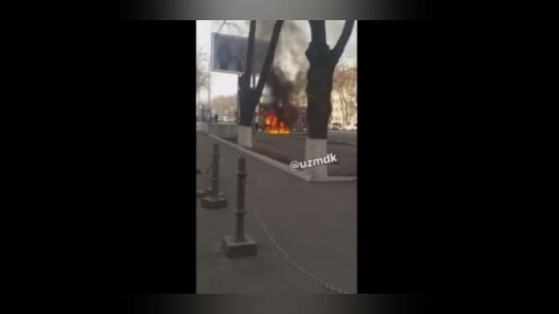 Накануне очевидцы поделились в социальных сетях возгоранием транспортного средства на одной из дорог Ташкента.
