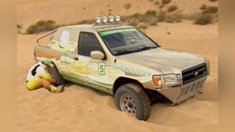 Тестовый заезд подготовленного к гонкам внедорожника прошел в Каракумах. По словам Бердымухамедова, в автомобиле устранены все недоработки и он полностью соответствует международным стандартам.