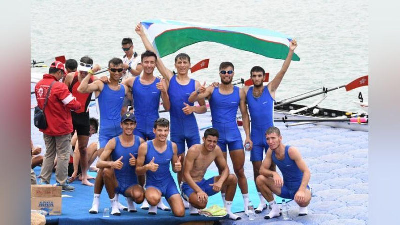 Первыми серебряными призерами стал экипаж восьмерка по академической гребле. Алишер Яров, Достонжон Бахриев, Ислам Мамбетназаров, Достонжон Хурсанов, Шохжахон Нажмиев, Отамурод Рахимов, Шехроз Хакимов, Зафар Усмонов, Анатолий Краснов в финале стали вторыми с результатом 6:12.46.