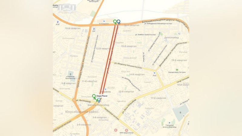 В связи с проведением строительных работ на Юнусабадской линии метро с 21 сентября временно ограничено движение транспортных средств по улице Ахмад Дониш в Юнусабадском районе Ташкента.