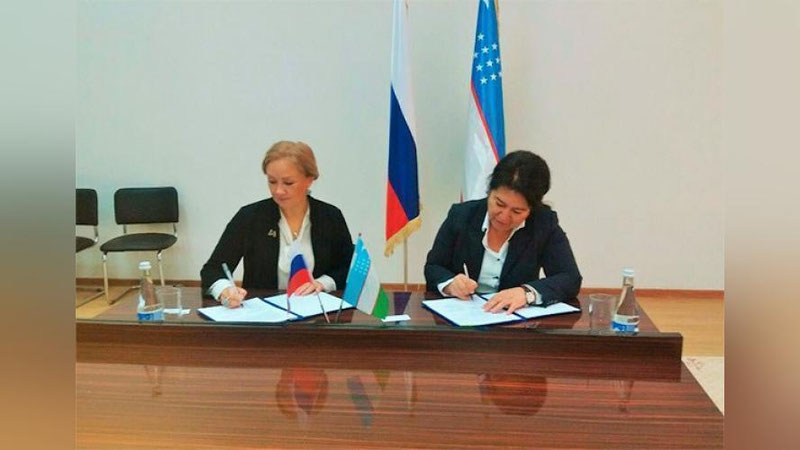 Ректор Института переподготовки и повышения квалификации руководителей и специалистов системы народного образования имени А.Авлони Наргиз Рахманкулова и Ректор Федерального государственного бюджетного образовательного учреждения высшего образования «Государственный институт русского языка им. А.С. Пушкина» Маргарита Русецкая поставили свои подписи под документом.