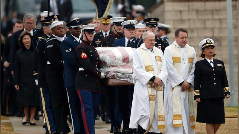 Экс-президента похоронили с военными почестями на территории президентской библиотеки его имени при Техасском сельскохозяйственном и машиностроительном университете.