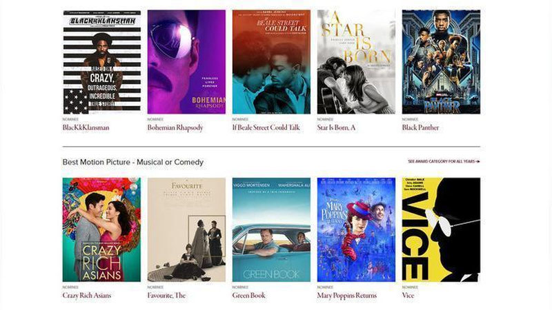 В главной категории — "Лучший драматический фильм" – на награду претендуют кинокомикс "Черная пантера" Райана Куглера, "Богемская рапсодия" Брайана Сингера, "Черный клановец" Спайка Ли, "Если Бил-стрит могла бы заговорить" Барри Дженкинса и "Звезда родилась" Брэдли Купера.