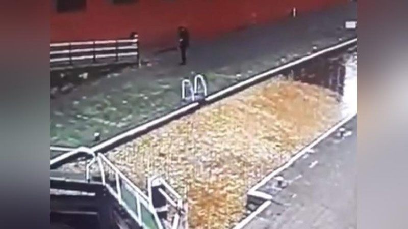 В ролике видно, что британец был погружен в гаджет, и принял посыпанный листьями канал за дорогу. В итоге он без колебаний шагнул в него и упал в воду.