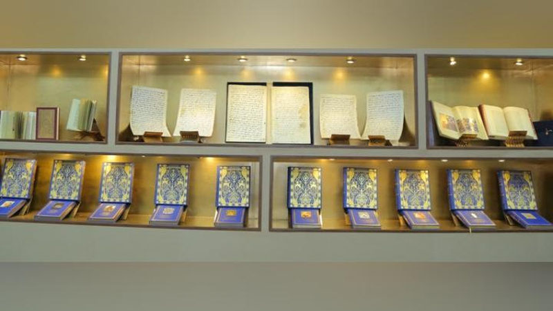 В ее экспозиции − 20 томов книг-альбомов серии «Культурное наследие Узбекистана в собраниях мира», 12 томов серии «Архитектурная эпиграфика Узбекистана», факсимиле уникальных средневековых рукописей, ныне хранящихся в различных зарубежных собраниях. В их числе - «Катталангарский Коран», «Темуртузуклари», «Зафар-наме», «Диван» Хусейна Байкара, «Мирадж-наме».