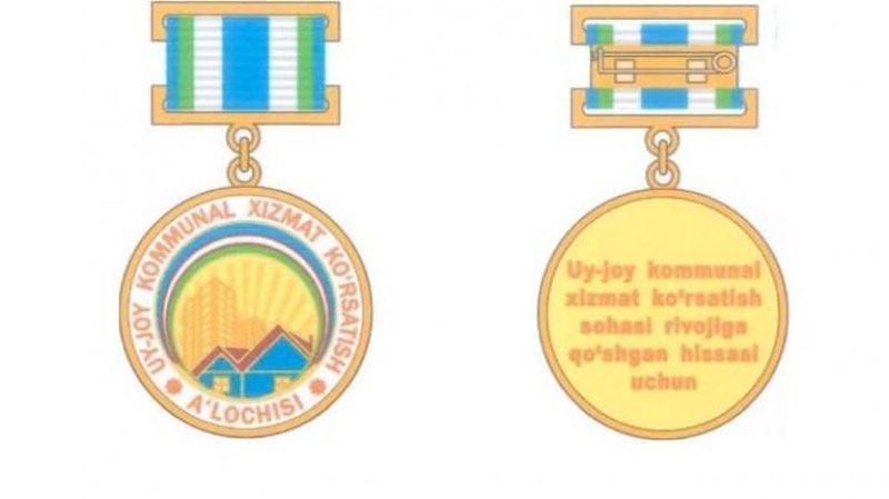 Нагрудный знак «Уй-жой коммунал хизмат курсатиш аълочиси» учрежден постановлением Кабинета Министров.