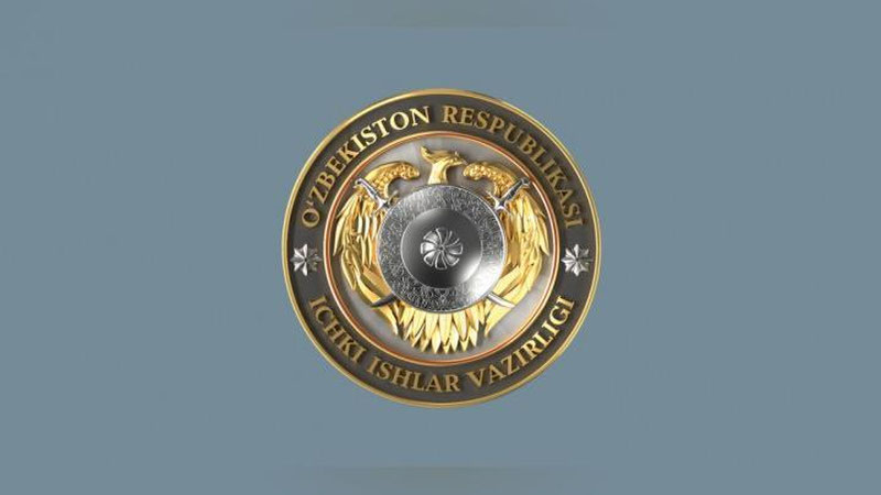 Геральдический знак – эмблема Министерства внутренних дел Республики Узбекистан представляет собой круг темно-серебристого цвета с кольцевой полосой по краю, обрамленной линиями бронзового цвета. По центру внутренней линии нанесена полоса красного цвета, символизирующая жизненную силу.