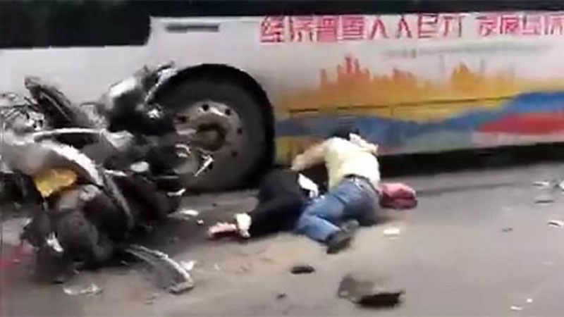 В Сети появились кадры с места наезда автобуса на толпу людей в Китае. По данным портала "Сина", ЧП произошло в провинции Лунъянь.