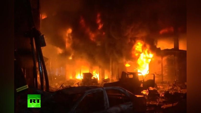 По меньшей мере 50 госпитализированы. Возгорание началось в четырёхэтажном доме, после чего огонь перекинулся на соседние здания. Сообщается, что причиной пожара стал взрыв газового баллона.