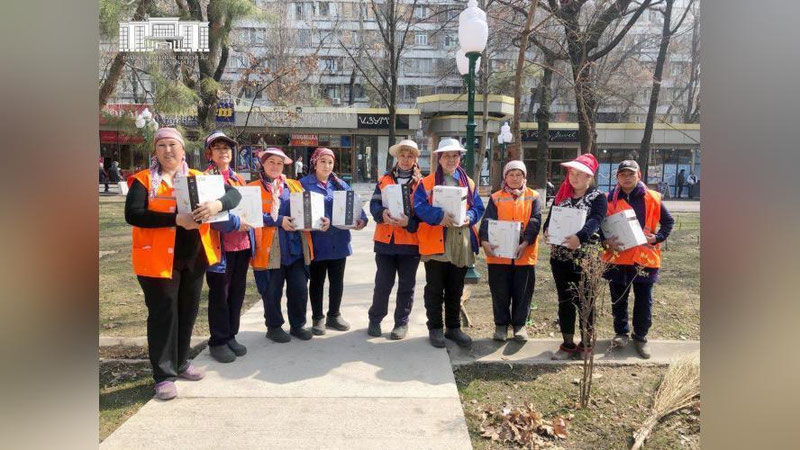 Не обошли вниманием и работниц Управления благоустройства, которые и в предпраздничные дни не покладая рук трудятся на улицах столицы, высаживая цветы и наводя порядок на тротуарах и красоту на клумбах. Им вручили чайники - всего 3800 единиц.