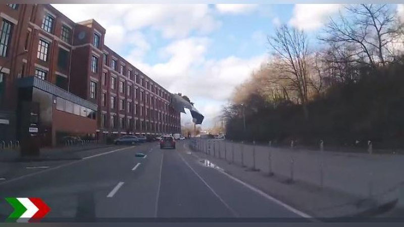 На кадрах можно видеть, как ветер срывает кровлю со здания. И та обрушивается на дорогу перед едущими автомобилями. А секунды спустя крыша падает на машину водителя, на видеорегистратор которого и попал инцидент. К счастью, на этот раз никто не пострадал.