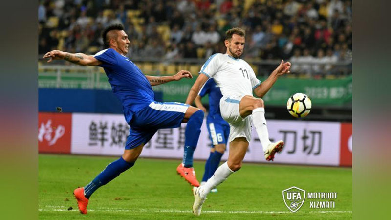 В этой встрече сборная Узбекистана вышла на поле против Уругвая. Поединок закончился со счётом 3:0 в пользу нашего соперника. Авторами голов стали Гастон Перрейра и Кристиан Стуани (дубль).