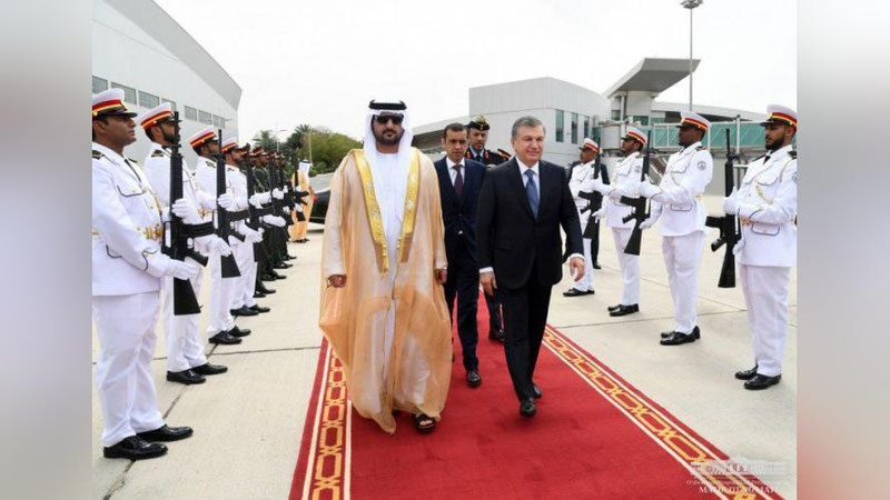 Шавкат Мирзиёев провел в Абу-Даби встречу с Наследным принцем Эмирата Абу-Даби, заместителем Верховного Главнокомандующего Вооруженными силами ОАЭ Шейхом Мухаммадом бин Заидом Аль Нахаяном, в Дубае прошли переговоры с Вице-президентом, Премьер-министром ОАЭ, эмиром Дубая Шейхом Мухаммадом бин Рашидом Аль Мактумом и другими официальными лицами.