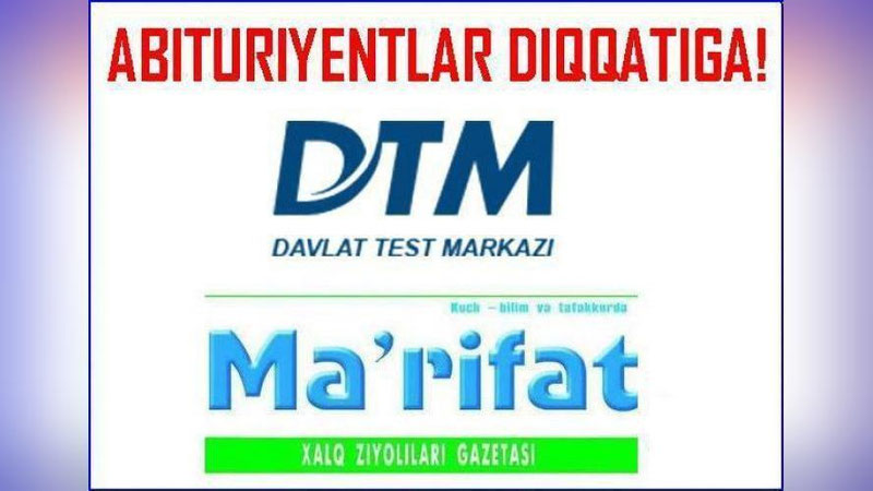 Чтобы помочь абитуриентам подготовиться к тестовым испытаниям, начиная с очередных выпусков, в газете «Марифат» будут публиковаться вопросы тестов по экзаменационным предметам, проходящих апробацию в Государственным тестовом центре.