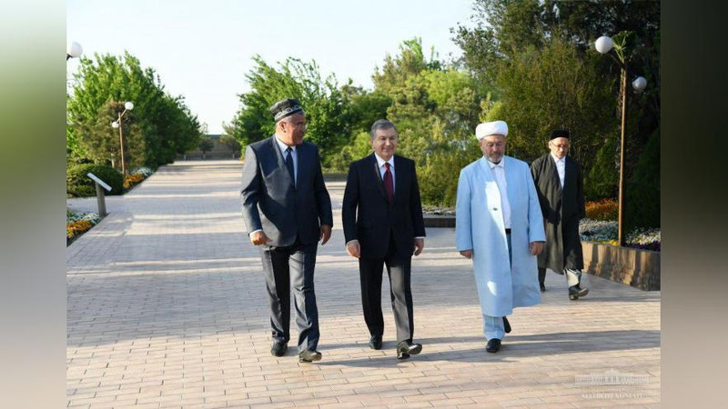 Президент нашей страны посетил в Сурхандарье мавзолей Султана Саодата. Были прочитаны суры из Корана.