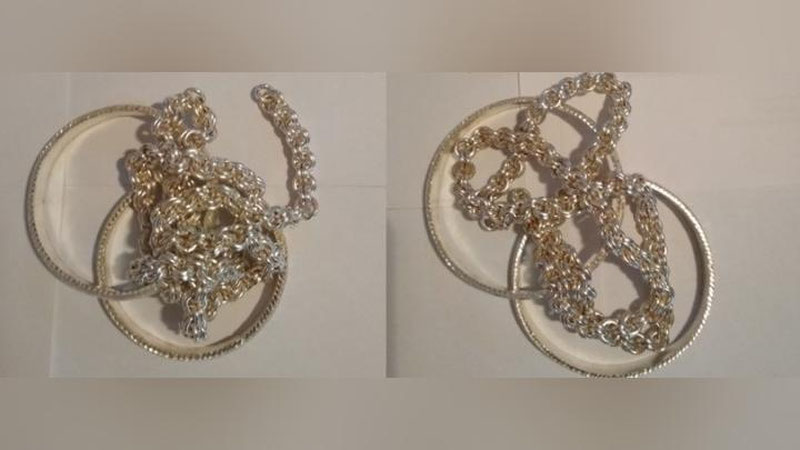 Также в ходе мероприятия была задержана еще одна гражданка Ю.М., направляющаяся в соседнее государство через этот же приграничный таможенный пост. В результате проведенного личного досмотра выяснилось, что эта гражданка также тайно пыталась вывезти ювелирные украшения в количестве чуть менее 602 грамм на сумму 210 миллионов 600 тысяч сумов в виде 1 цепи и 2 браслетов. Самое интересное то, что ювелирные украшения также были заранее окрашены в белый цвет.