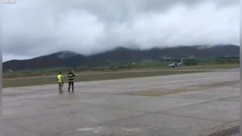 Как видно на кадрах, которые публикует LiveLeak, сначала воздушное судно приближается к земле, однако в момент соприкосновения со взлетно-посадочной полосой отскакивает от нее и кренится вперед. Затем оно снова подпрыгивает и едва не теряет равновесие.