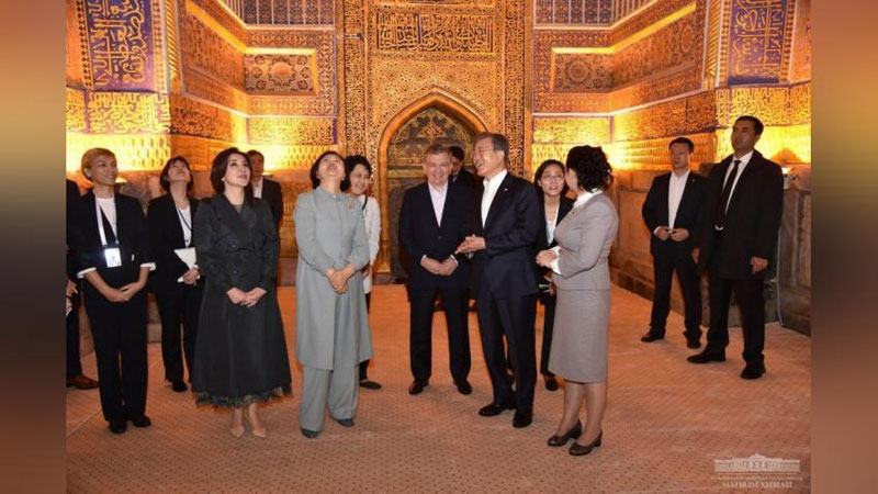 Сперва главы государств побывали в обсерватории и музее Улугбека. Любимый внук Амира Темура, великий ученый-астроном и правитель Мухаммад Тарагай Мирзо Улугбек внес огромный вклад в развитие науки и культуры. Он построил уникальную для Средневековья обсерваторию, в которой с особо высокой точностью изучал небесные тела. Его "Новые астрономические таблицы Курагони" долгие годы служили важным пособием по астрономической науке.