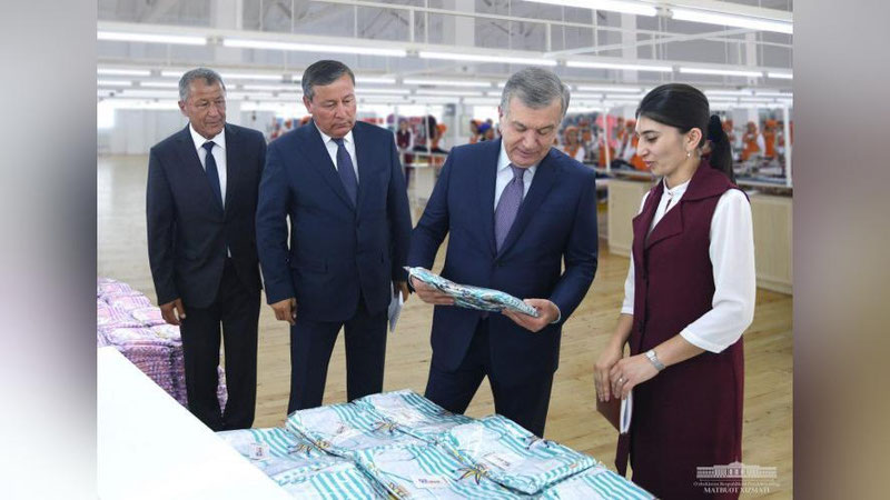 Президент Республики Узбекистан Шавкат Мирзиёев по прибытии в Андижанскую область ознакомился с деятельностью общества с ограниченной ответственностью «Xon tex city» в городе Ханабаде.