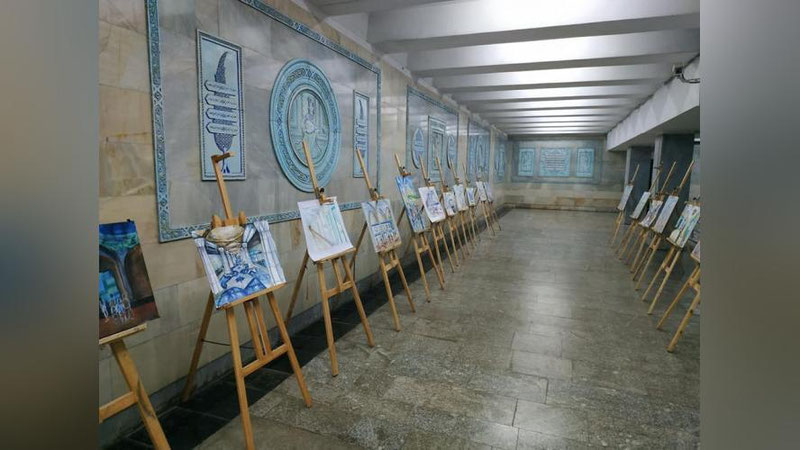 На переходе между станциями метро "Алишера Навои" и "Пахтакор" в Ташкенте открылась выставка художественных работ.