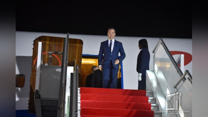 Делегация во главе с председателем правительства Российской Федерации Дмитрием Медведевым 29 мая вечером прибыла в нашу страну.