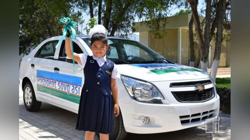 На прошедшем в Букинском районе мероприятии девочке исполняющим обязанности хокима Ташкентской области Рустамом Холматовым были вручены ключи от "Кобальта".