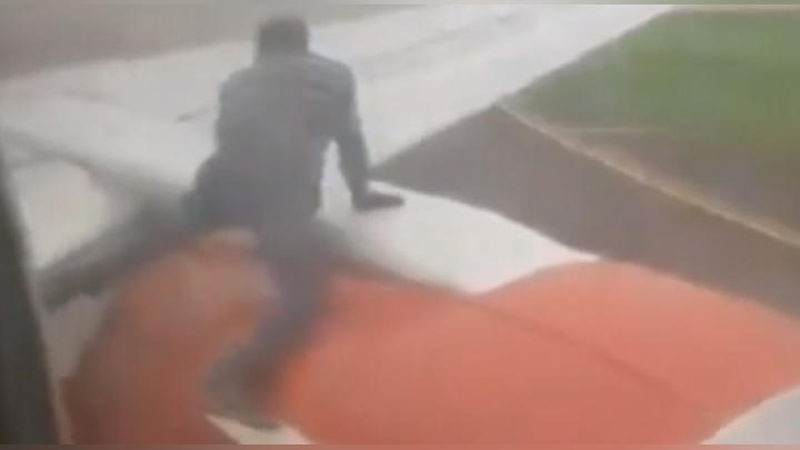 Пассажиры нигерийской авиакомпании Azman Air впали в панику, когда перед взлетом увидели мужчину, который забрался на крыло самолета.