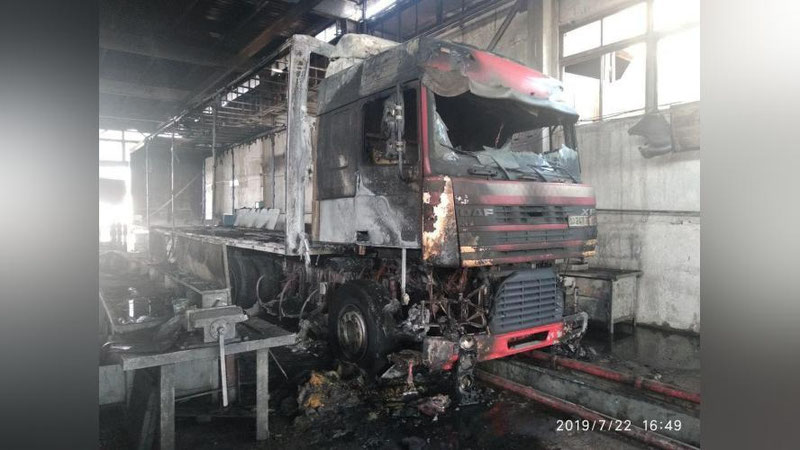 22 июля в 15:40 в Яшнабадском районе Ташкента по улице Уйсозлар, 7, в ремонтном боксе автотранспортного предприятия “Шохрух”, горел автоприцеп (тягач) марки “DAF”.