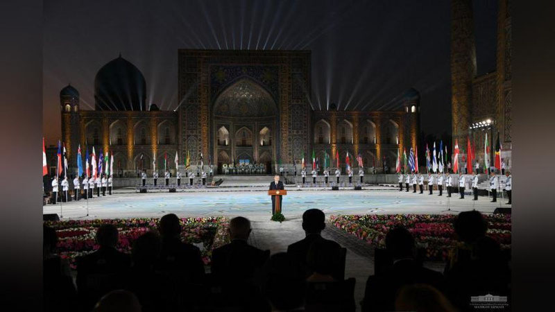 Глава государства поприветствовал гостей и поздравил собравшихся с открытием фестиваля. Шавкат Мирзиёев отметил, что мероприятие стало своеобразной площадкой для диалога между различными культурами и цивилизациями, странами и народами, и что каждый артист, поднимаясь на эту прекрасную сцену на величественной площади Регистан, воспевает высокие идеалы гуманизма, которые объединяют людей независимо от их национальности, языка и религии.