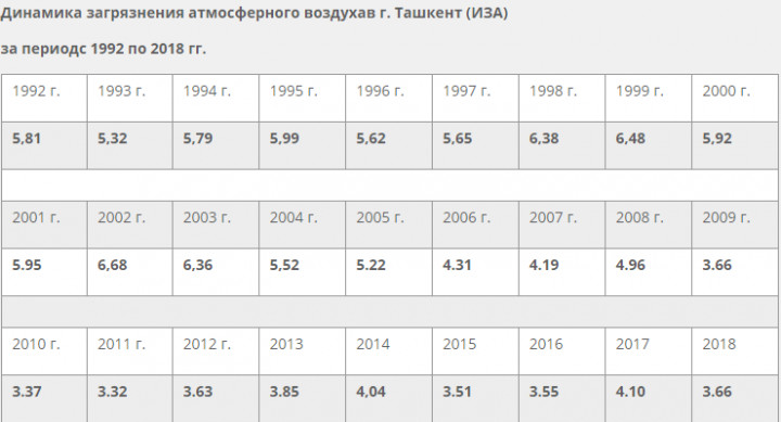 За последнее десятилетие уровень загрязнения атмосферного воздуха в целом по Ташкенту считается пониженным.