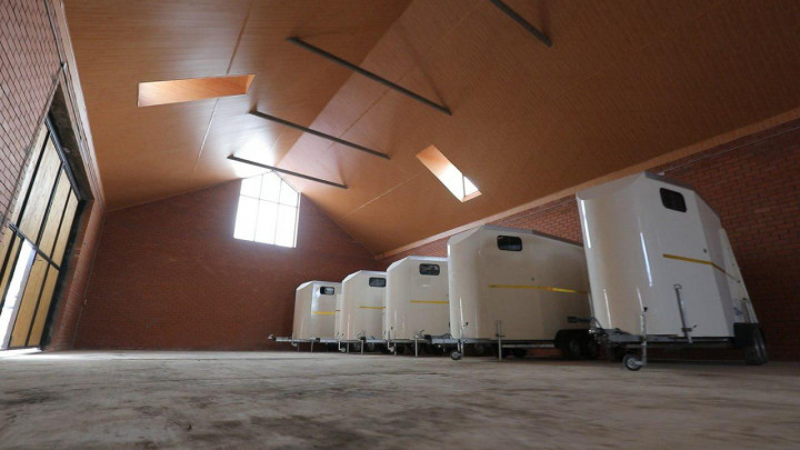 В отдельном блоке хранятся седла и прочая амуниция для лошадей и кавалеристов в погонах, и здесь же отведено место для трейлеров, в которых лошадей довозят до места несения службы.