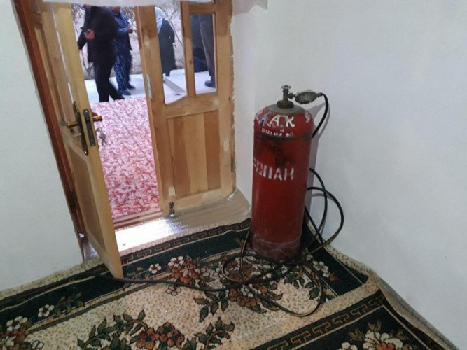Как оказалось, дом обогревался самодельной печью, к которой резиновым шлангом был присоединен баллон с пропаном.