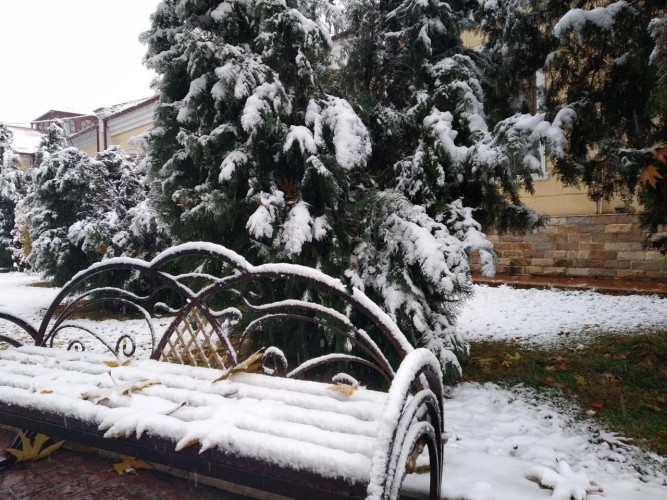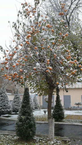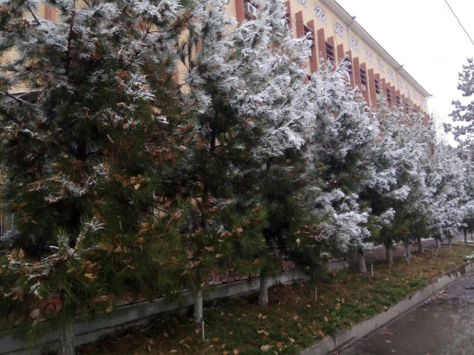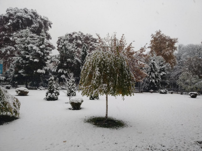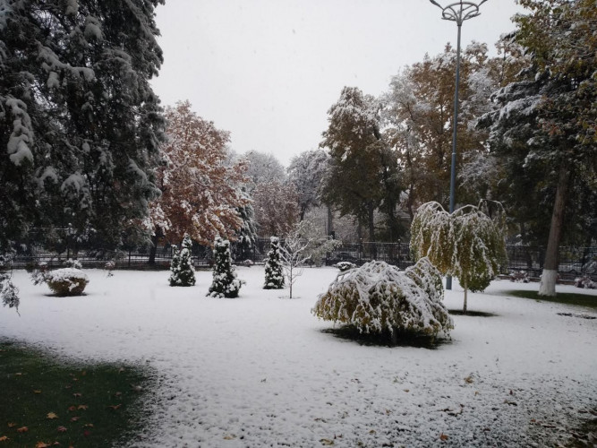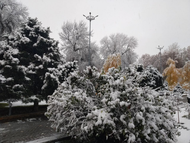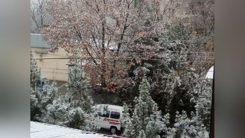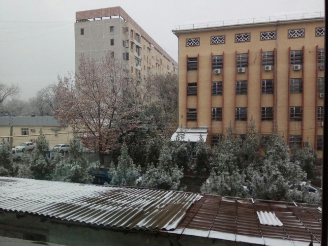 В Ташкенте снег начался рано утром и не прекращается уже почти весь рабочий день. К трем часам дня снег засыпал деревья. Напомним, снежная погода будет наблюдаться вплоть до воскресенья включительно, а с понедельника осадков не ожидается, но морозы сохранятся.