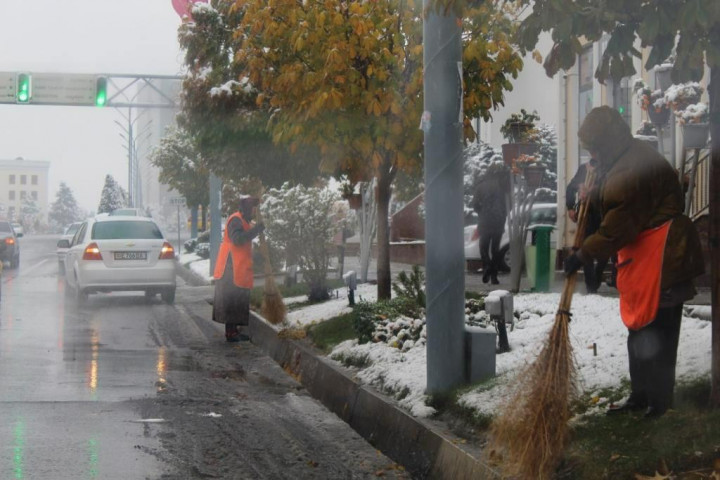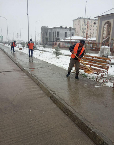 Несмотря на холода, работники благоустройства приводят улицы Самарканда в порядок