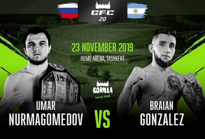 Главным событием турнира GFC 20 в Ташкенте станет титульный поединок младшего кузена Хабиба Нурмагомедова - Умара Нурмагомедова (11-0-0). Изначально чемпион лиги в легчайшем весе (61,2 кг) должен был сойтись в клетке с популярным питерским бойцом Никитой Чистяковым (11-5-1), но тот в ходе сборов в Таиланде подхватил конъюнктивит и был вынужден отказаться от боя с Умаром.