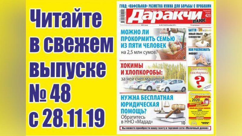 Оформите подписку на «Даракчи плюс» в почтовом отделении или газетном киоске «Матбуот таркатувчи» и получите подарок и доставку газеты на дом! Только для города Ташкента.
