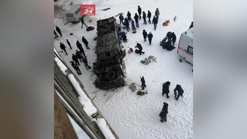 В России, в Забайкальском крае, туристический автобус, который ехал из Сретенска в Читу, упал с моста на лед реки Куэнга.