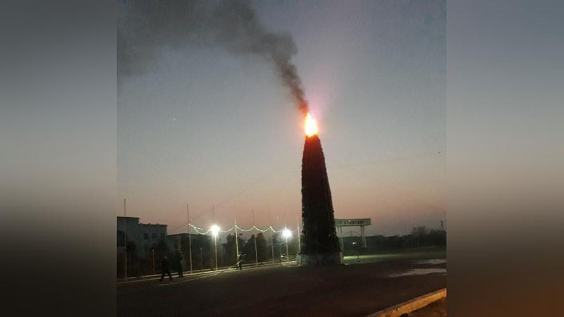 В Гузарском районе Кашкадарьинской области неподалеку от профессионального футбольного клуба «Шуртан» загорелась новогодняя елка.