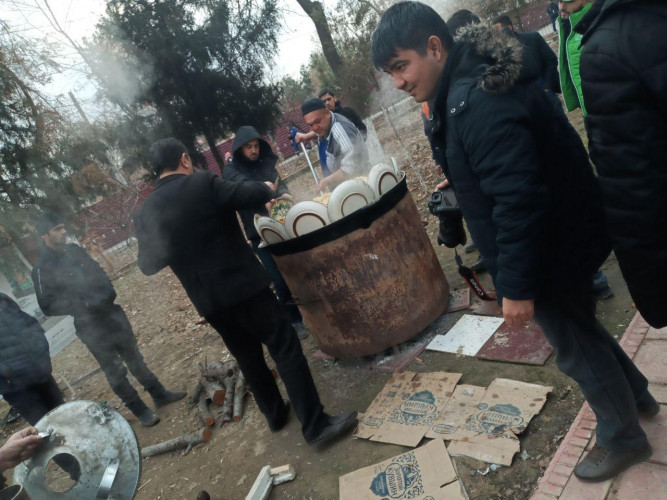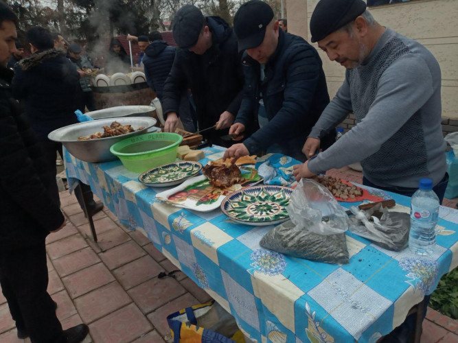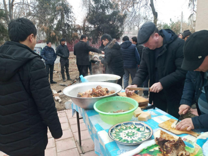 На обед у работников благоустройства был плов: