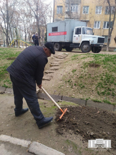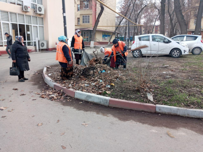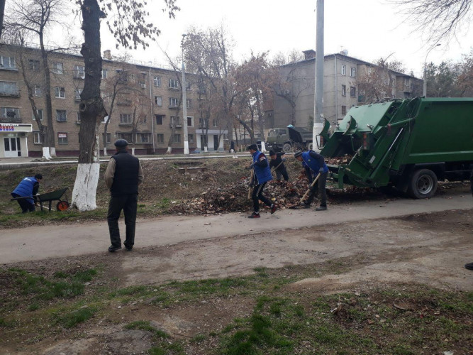 Сегодня десант, состоящий из работников управления благоустройства и нанятых работников, высадился в махалле "Богистон" Учтепинского района.