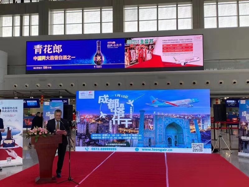 10 января 2020 года совершил первый чартерный рейс из Чэнду в Ташкент самолет китайской авиакомпании «Zhejiang Loong Airlines Co.Ltd.» с общей вместимостью 173 человека.